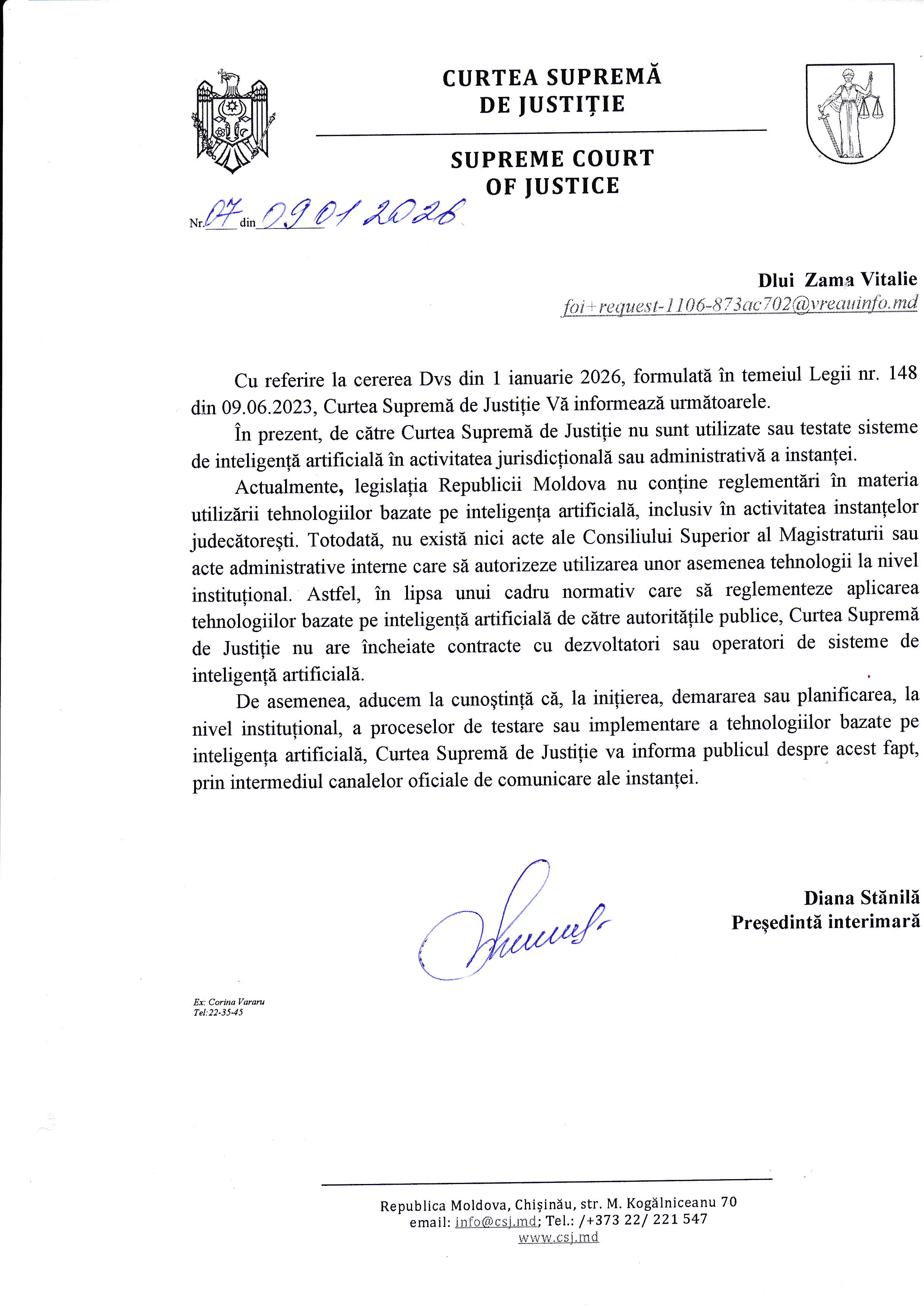 Это HTML-версия приложения к запросу «Свобода информации» 'Inteligența Artificială la Curtea Supremă de Justiție'.